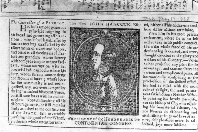 A largely mediocre student — although he proved adept at penmanship — Hancock went to work for his uncle’s import-export business after graduating from Harvard in 1754. He became a partner after a stint overseas in London in the early 1760s, and then inherited the firm following Thomas’ death in 1764. As befitting a man who then ranked among the wealthiest in Boston, Hancock was named a city selectman in 1765, before earning election to the Massachusetts House of Representatives the following year.
