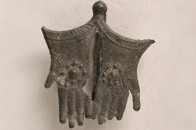 Uniforms and insignia served a similar function, especially for travelers. In the late 15th century, official couriers from cities such as Basel, Switzerland, and Strasburg, France, wore uniforms in city colors and carried visible badges. Pilgrims and beggars in the late Middle Ages and beyond were also required to wear specific objects — such as metal badges or tokens — that marked their status and origin. Some badges allowed the bearer to beg legally or buy subsidized bread, offering both practical aid and visible authentication.